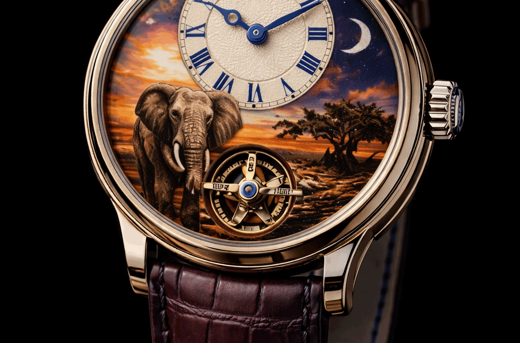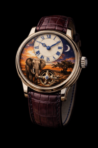 Geneva Grand Feu enamel dial Swiss Bespoke Watch Luxury timepiece – Elephant of the African Savannah Tailor-made timepiece Artisanal dial Watch Limited edition