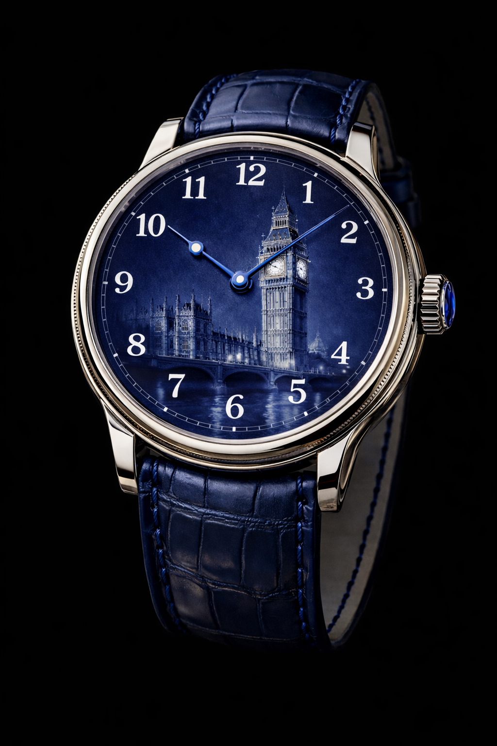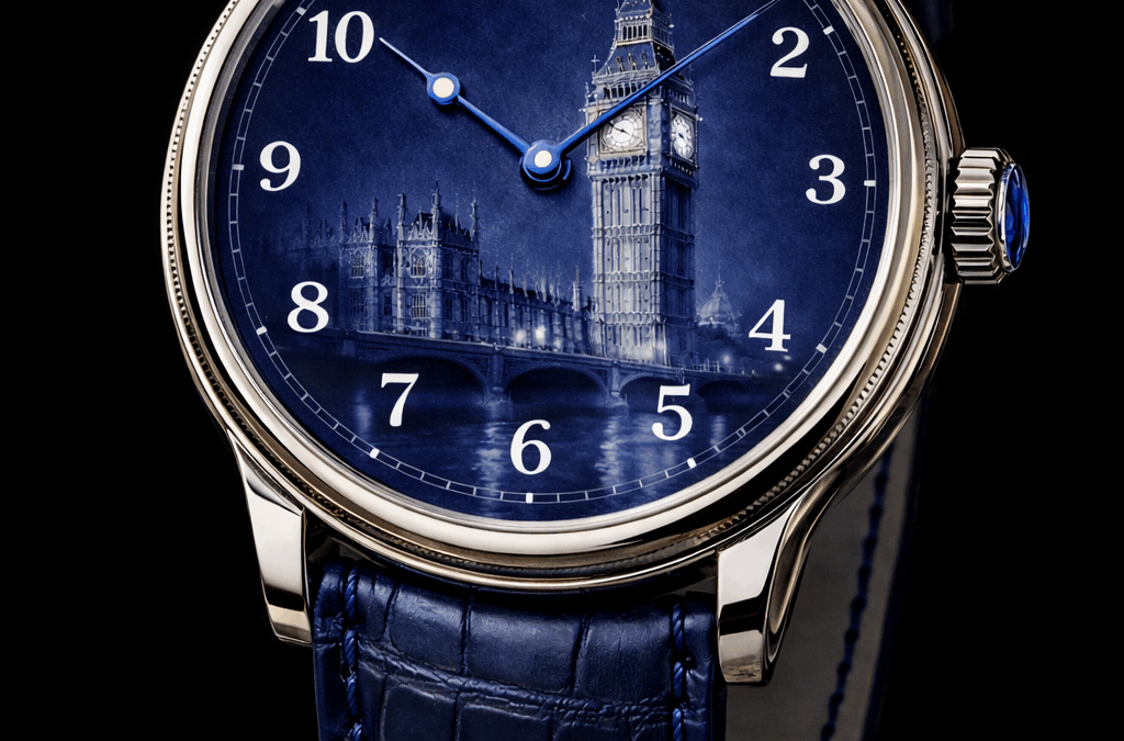 London Grand Feu enamel dial Swiss Bespoke Watch Luxury timepiece – Big Ben overlooking the River Thames London Tailor-made timepiece Artisanal dial platinum Watch Limited edition
